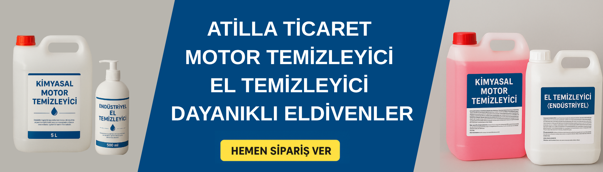 Atilla Ticaret olarak yıllardır endüstriyel temizlik bezleri, motor temizleyici, el temizleyici ve dayanıklı eldiven ürünleriyle birçok sektöre güvenilir çözümler sunuyoruz. Kaliteli, ekonomik ve çevre dostu ürünlerimizle Türkiye’nin dört bir yanına hizmet veriyoruz.